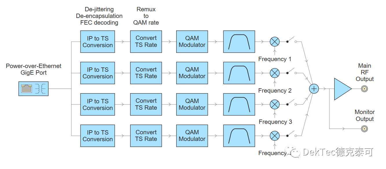 分享DekTec(德克泰可)獨立IP QAM調制器,支持4x QAM調制輸出,具備先進時間重建算法能有效克服IP抖動。